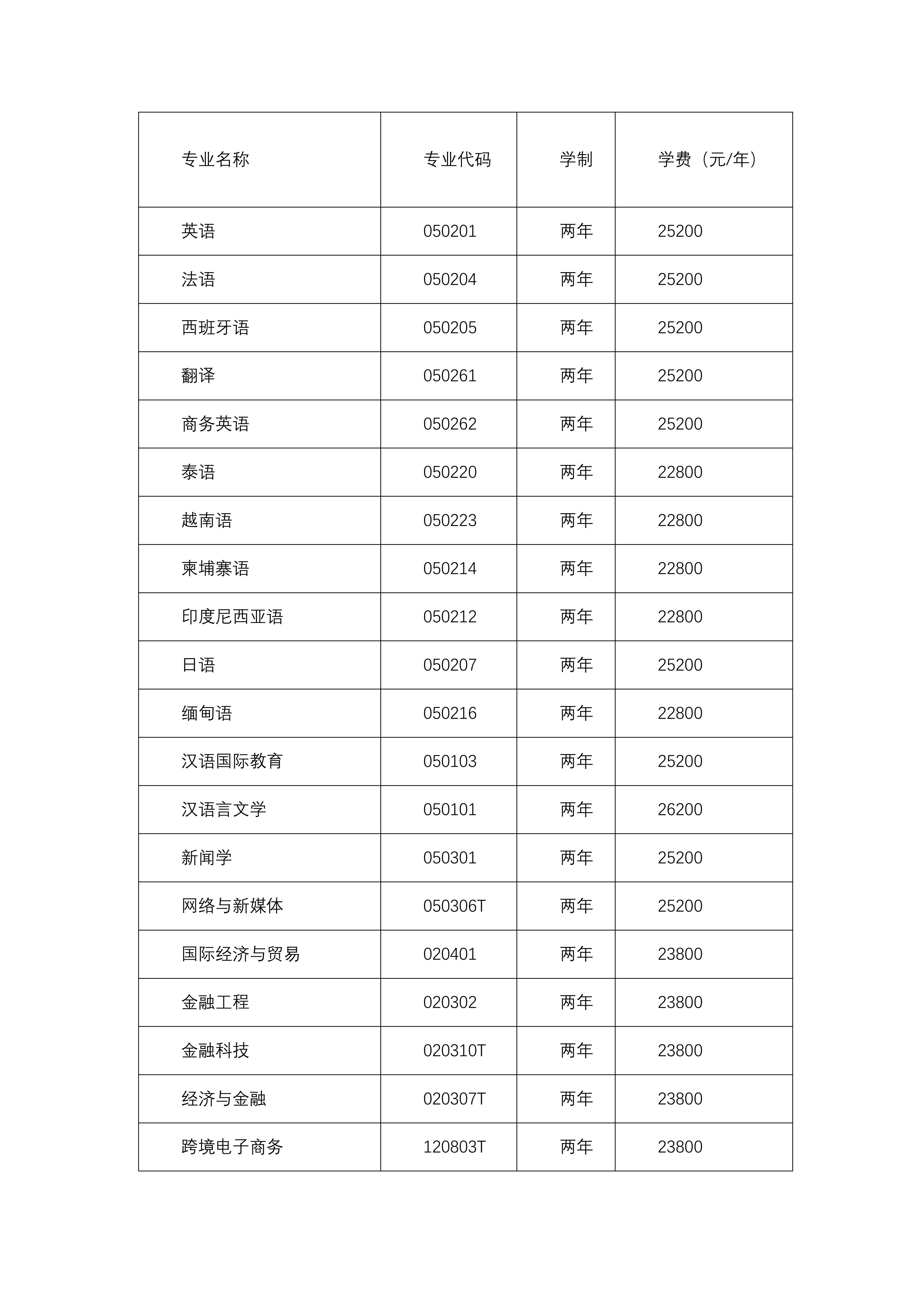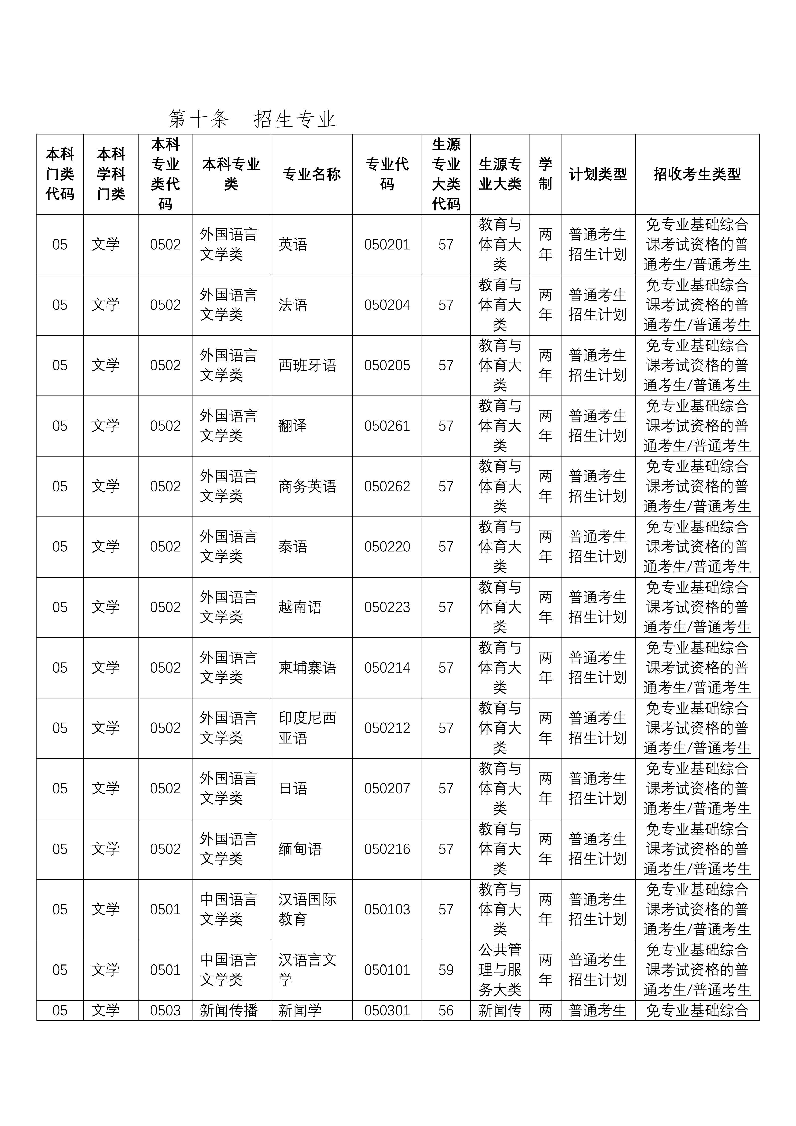 第二十条 各专业无外语语种限制。