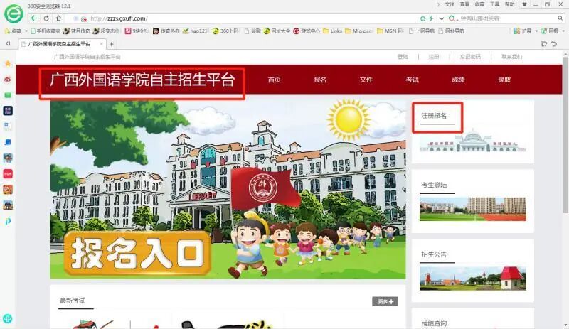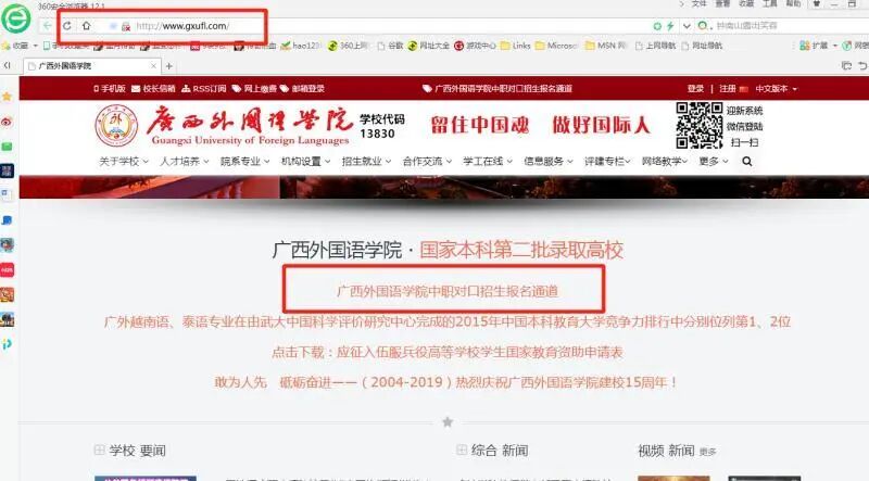 进入学校官网首页,点击广西外国语学院中职对口招生报名通道